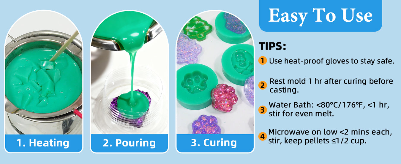 We recommend keeping the temperature below 60°C (140°F) when pouring the casting material into the cured mold for the best results.